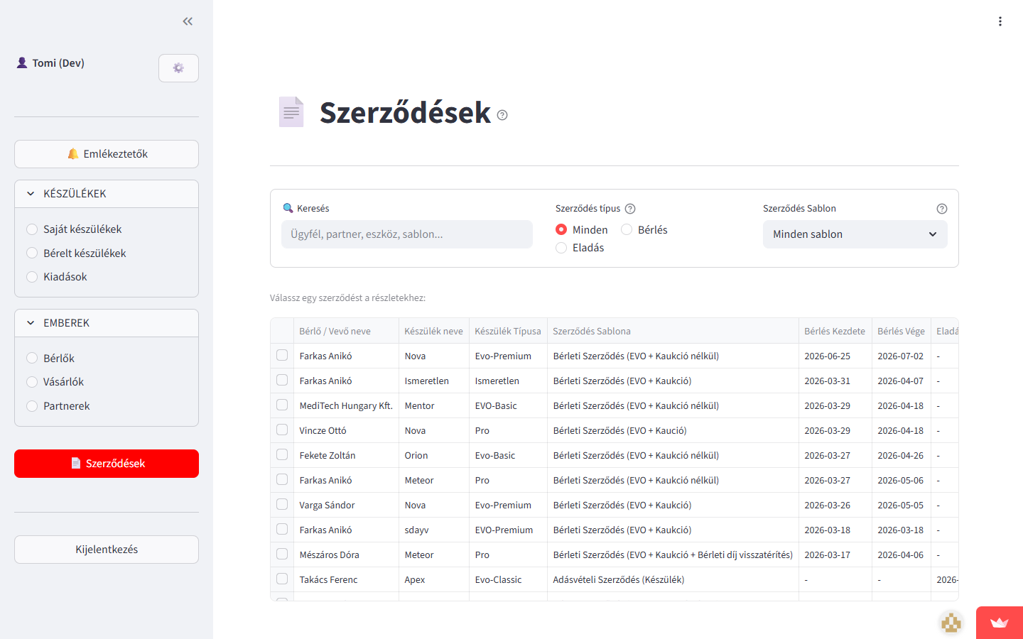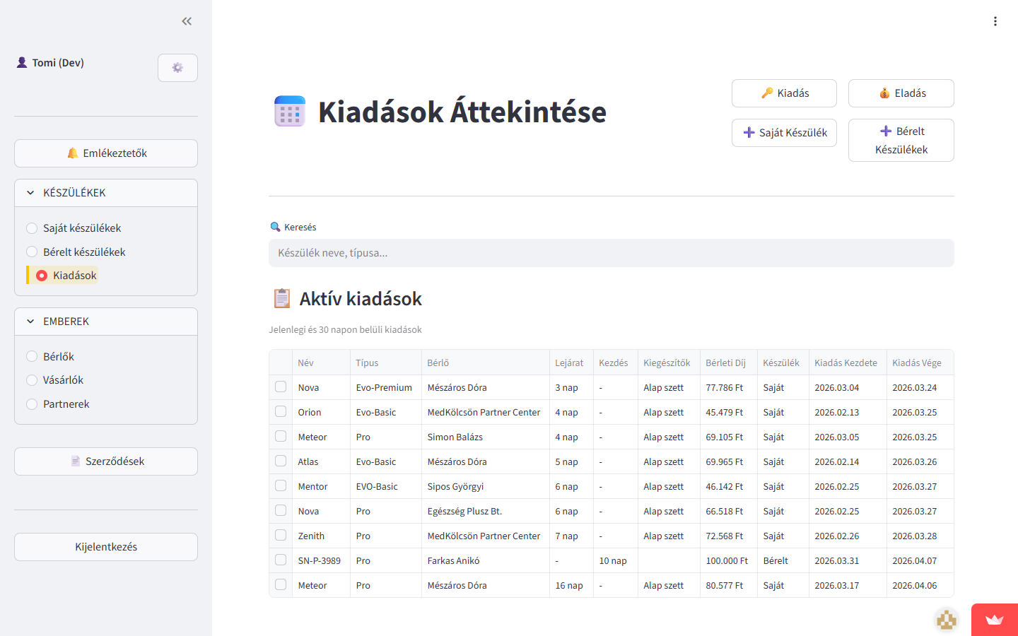 BEMER medical device distributors in Hungary manage rentals, sales, clients, and contracts manually using spreadsheets and paper. There is no visibility into device availability, rental overlaps, or revenue. Contract generation is tedious and error-prone.